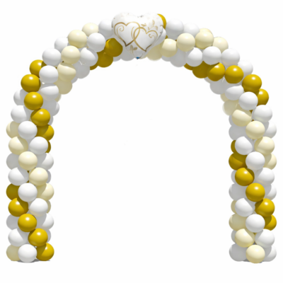 Onze ballonnenboog bruiloft is hét perfecte decorstuk voor jullie trouwdag. De prachtige combinatie van goud, wit en ivoor geeft direct een luxe en elegante uitstraling. Bovenaan de boog straalt een wit met gouden hartje, waardoor de trouwboog meteen een persoonlijke en liefdevolle sfeer uitstraalt. Ideaal als entree, achterwand voor foto’s of als decoratie bij de ceremonie.
